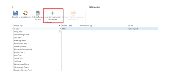In the second step, this item is assigned to an RMM function. To do this, select the "RMM Items" menu item in the item management section.