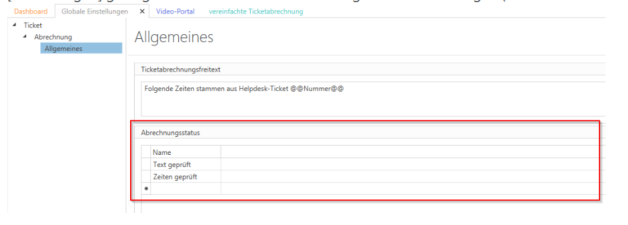 Here, for example, "Texts checked" is created and saved as the billing status for one employee and "Times checked" for another employee. The first employee can then filter by billing status "Empty" and receive all times without status. Now they can "check texts" and then change the status to "Text checked." (This billing status is only a filter and can only be found in "simplified ticket billing" and has no effect on the time or ticket status.)