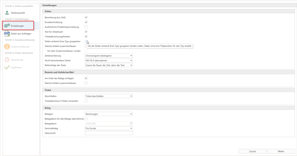 Under Settings, you can configure how the selected times for each customer should be transferred to the invoice.