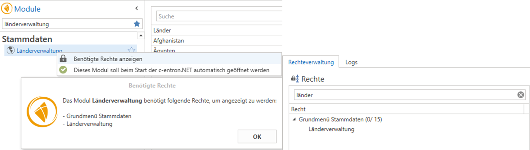 The Country Management module requires the following rights to be displayed: