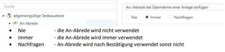 Salutation and closing texts in customer documents are now processed correctly: If the "Never" option is selected in the settings under "Agreement," any existing agreement text is removed from the customer document (e.g., quote) without being replaced by the text from the follow-up document (e.g., order). If the options "Always" or "On query" are selected, the text in the customer document is replaced by the text from the follow-up document – this prevents both texts from being transferred at the same time.