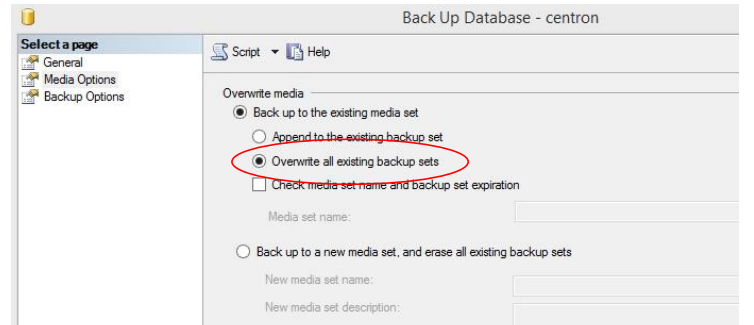 Create a database backup of the existing database on SQL Server 2008/2012. The following steps must be performed