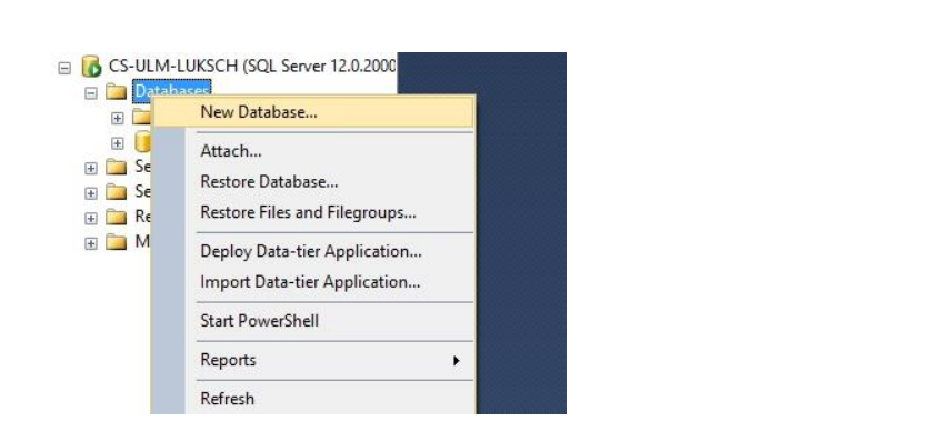 5. Create a new database named "Centron" on SQL Server 2014.
