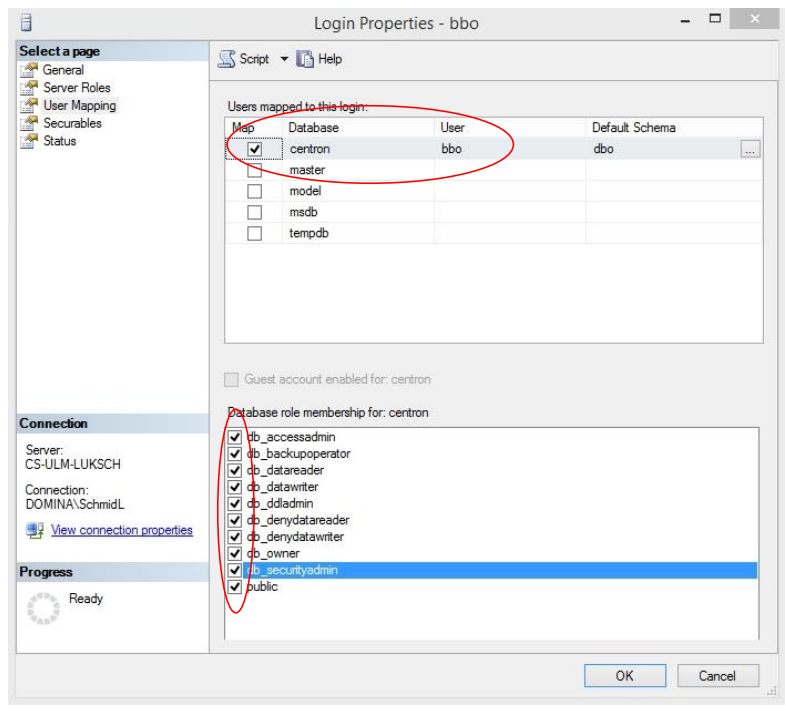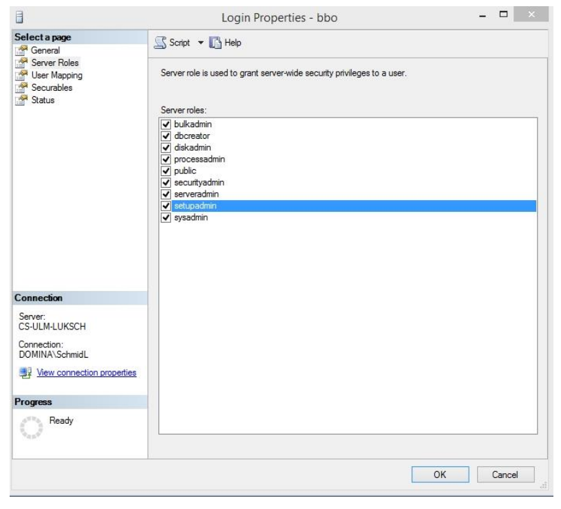 8. Create a "bbo" user under global security and grant them full access to the database and the database server