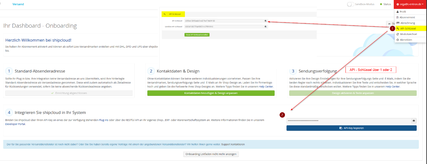 📝 Registration and API key at Shipcloud