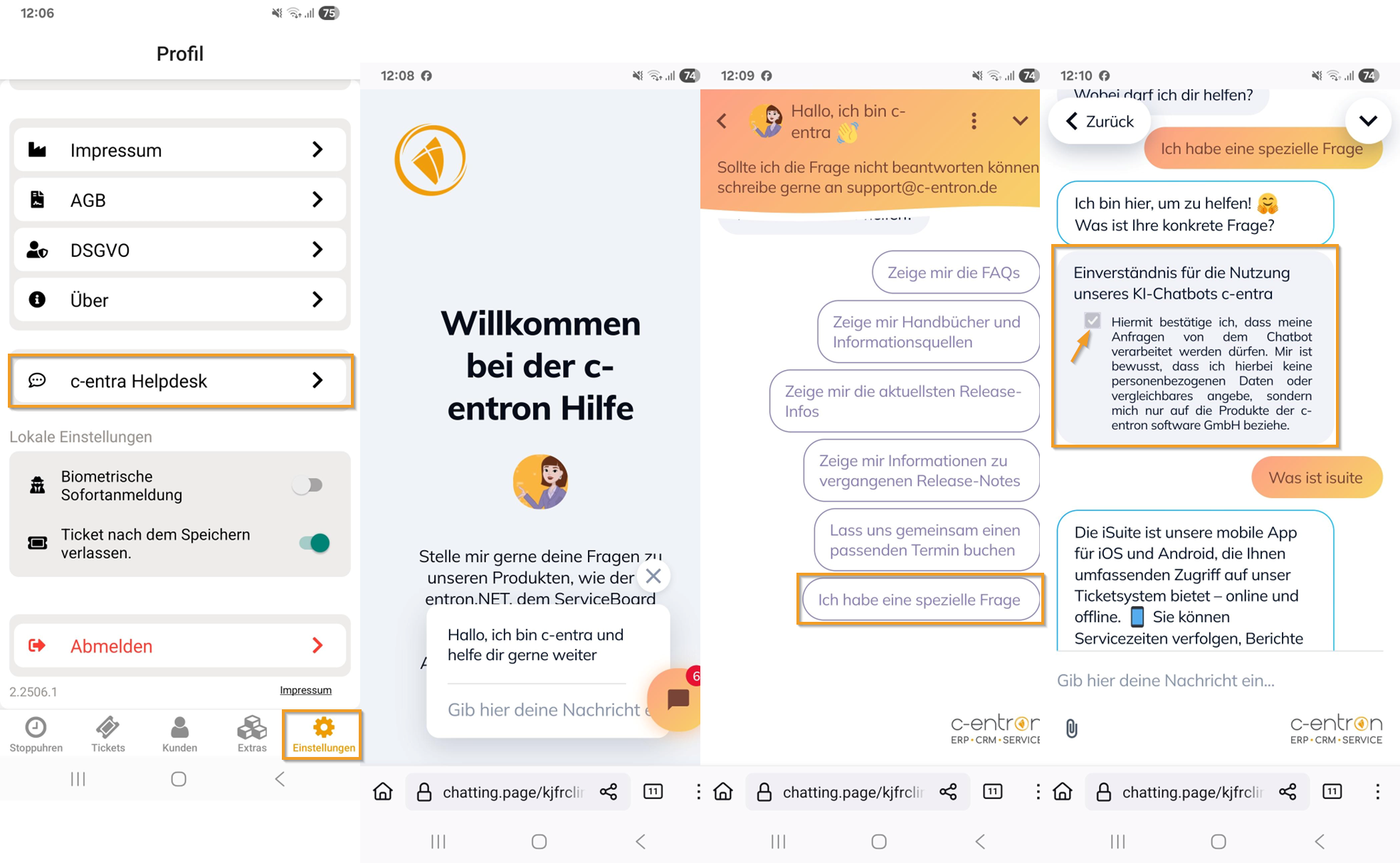 Clicking on it will take you directly to c-entra platform – a specially developed website that supports you with AI-based assistance. There you will find specifically prepared content that makes it easier for you to use the c-entron software, explains complex issues in an understandable way, and provides smart answers to your questions with the help of artificial intelligence.