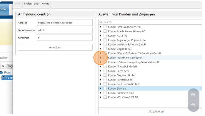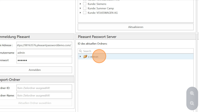 A subfolder is created for the access with the respective access data (as in this example: c-entron as the main folder, the customer access folder as a subfolder with the corresponding accesses)