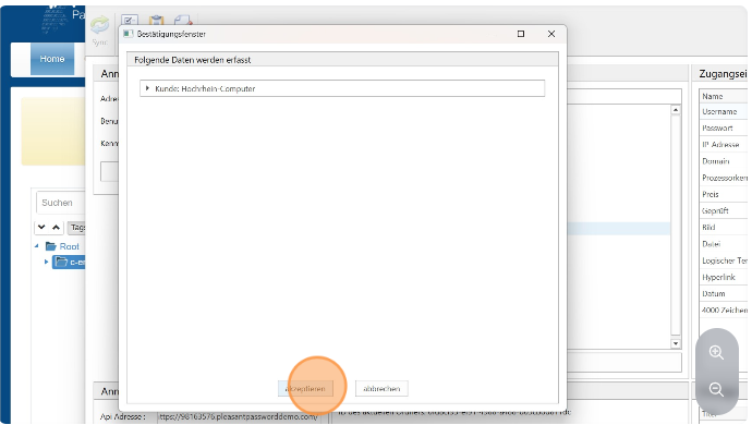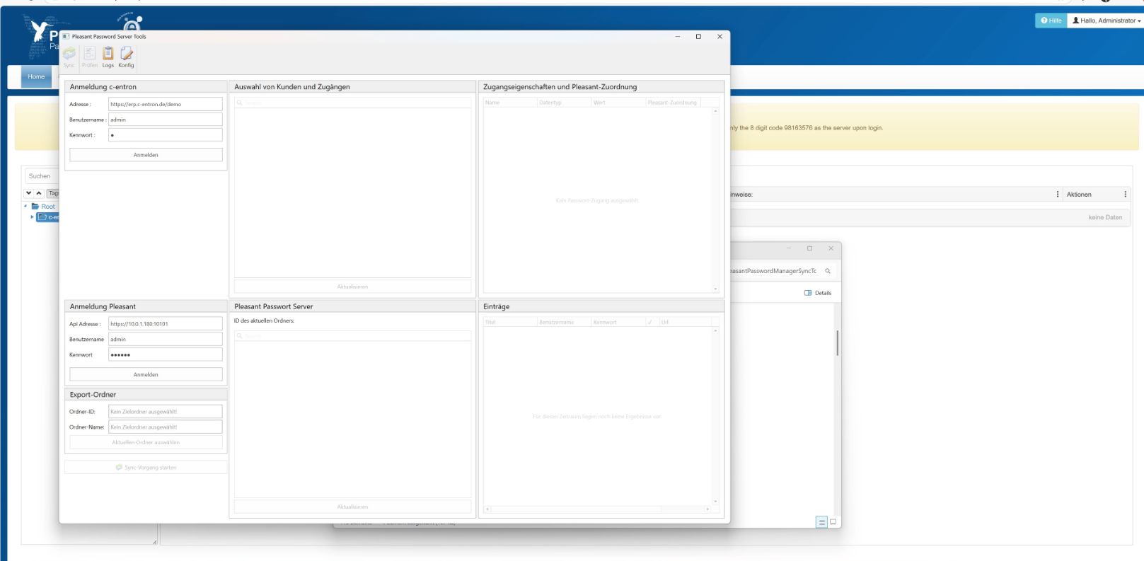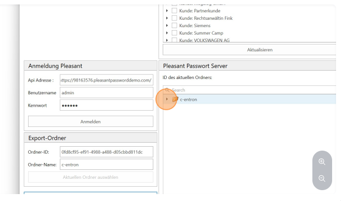 With the Pleasant Password Manager tool, you can easily import your c-entron Password Manager data to your Pleasant Password Server. Simply connect to your c-entron WebService and your Pleasant Server URL, select your access data from c-entron, and import it as a new instance into the desired folder of your Pleasant Password Manager